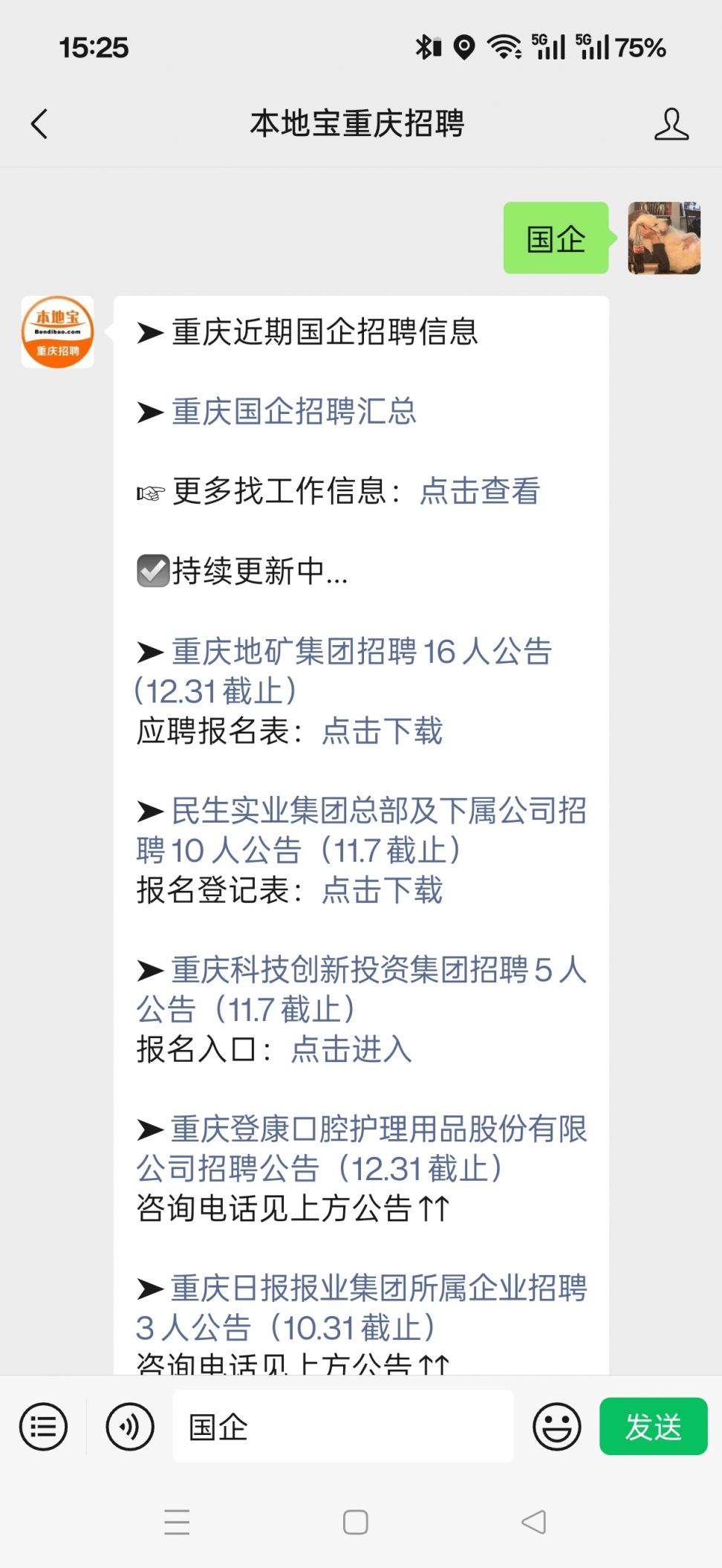 温馨提示:微信搜索并关注【本地宝重庆招聘】公众号,聊天对话框回复【国企】可获重庆最新国企招聘公告、招聘条件、招聘岗位、报名入口等相关信息。